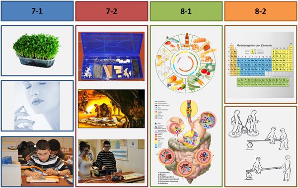 Im Lernbereich Naturwissenschaften werden Biologie, Chemie und Physik fächerverbindend unterrichtet. Dabei lassen sich Themen aus den Rahmenlehrplänen für Biologie, Chemie und Physik zu fünf Gruppen zusammenfassen: